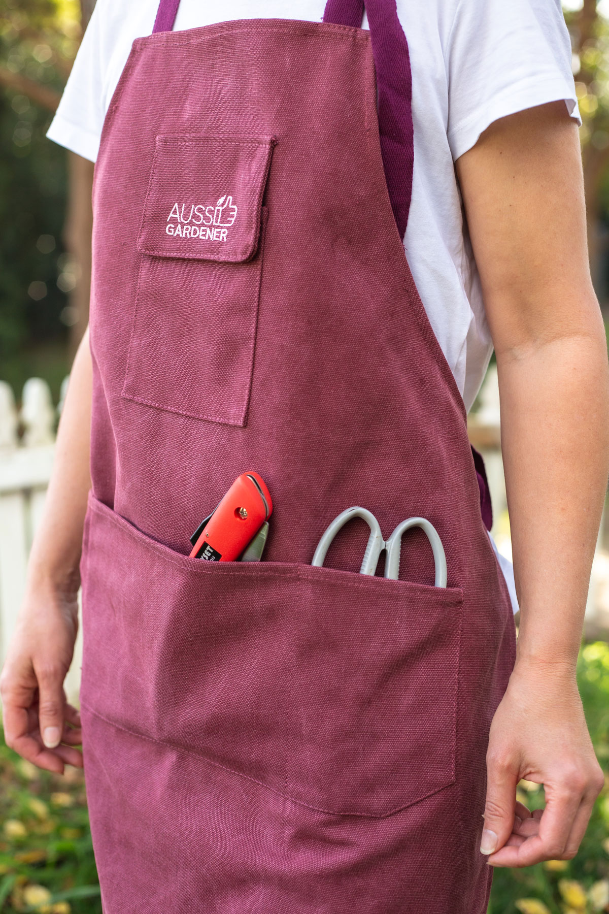Instead of changing into your daggy gardening clothes, you can just slip this canvas apron and be outside amongst the leaves and sunshine – shop online at the Aussie Gardener Store.